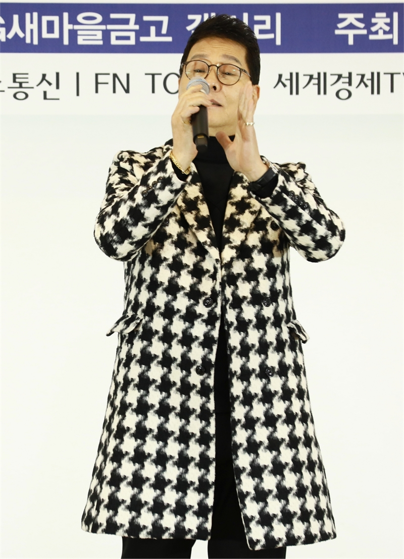 식전공연에서 열창하는 트로트 가수 한태진(사진:전현숙 기자)