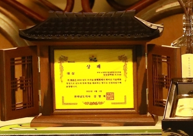 2025년 남도 우리술 품평회 대상 상패(사진:전현숙 기자)