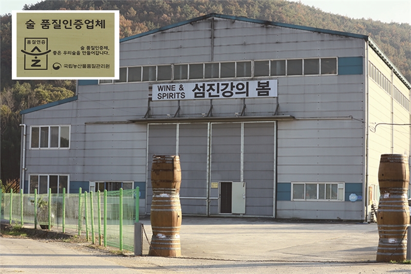 ‘섬진강의 봄’ 양조장 전경과 국립농산물품질관리원의 술 품질인증업체 품질 인증패(사진:전현숙 기자)