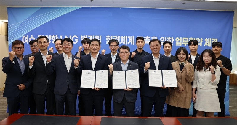 여수광양항만공사(YGPA)가 29일 공사 사옥 14층 대회의실에서 포스코인터내셔널(사장 이계인), 포스코플로우(사장 반돈호)와 여수·광양항 LNG 벙커링 협력체계 구축을 위한 업무협약을 체결했다. 이번 협약은 여수·광양권역 내 LNG 벙커링 인프라를 조기에 구축하고, 벙커링 선박의 도입부터 운영까지 전 주기에 이르는
