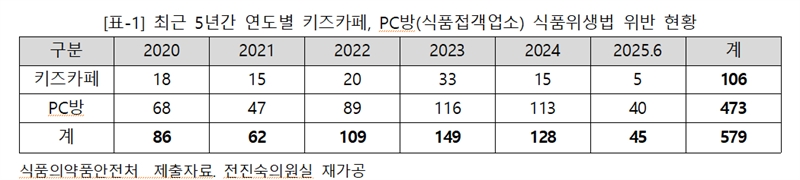 최근 몇 년간 키즈카페와 PC방에서 식품위생법 위반이 해마다 되풀이되며 근본적인 개선이 이뤄지지 않고 있다. 특히 영업자가 반드시 이수해야 하는 위생교육을 받지 않은 사례가 전체 적발 건수의 절반 이상을 차지해, 기본적 안전장치조차 작동하지 않는 현실이 드러났다. 아동·청소년이 안전하게 이용해야 할 공간이 오히려 위생
